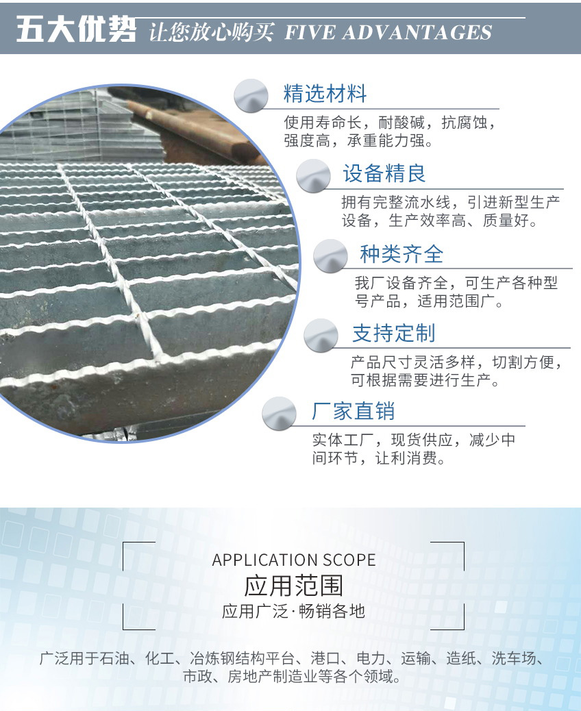 排水溝蓋板采用鋼格板設(shè)計(jì)制造,廣泛用于城市道路,廣場,園林,碼頭,機(jī)場,停車場,公路,鐵路,工業(yè)工程等各類工業(yè)民用建筑。